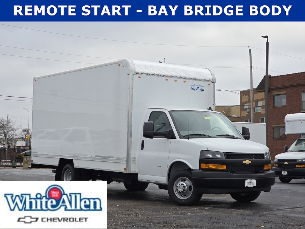 White Allen Chevrolet is proud to offer this 2025 Chevrolet Express 3500 Work Van in Summit White. BACKUP CAMERA, REMOTE START, BAY RIDGE BODY, DUALLY.