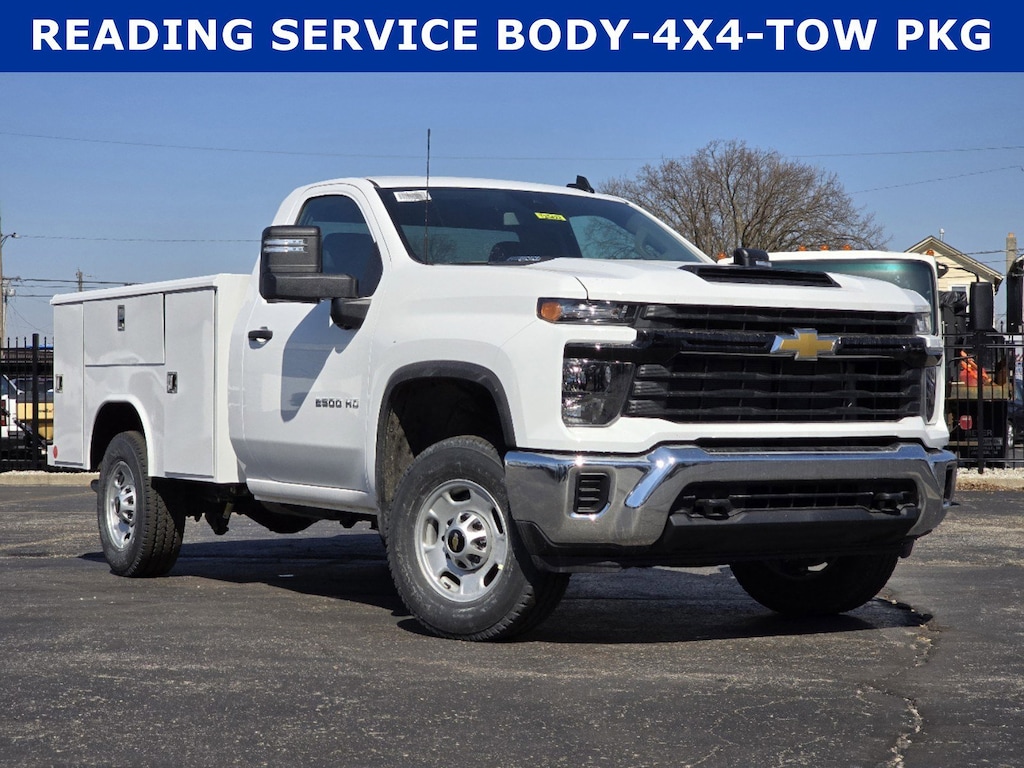 White Allen Chevrolet is proud to offer this 2025 Chevrolet Silverado 2500HD Work Truck in Summit White. TRAILER BRAKE CONTROLS, TOW PACKAGE, 4X4, APPLE CARPLAY AND ANDROID AUTO, BACKUP CAMERA, READING SERVICE BODY.