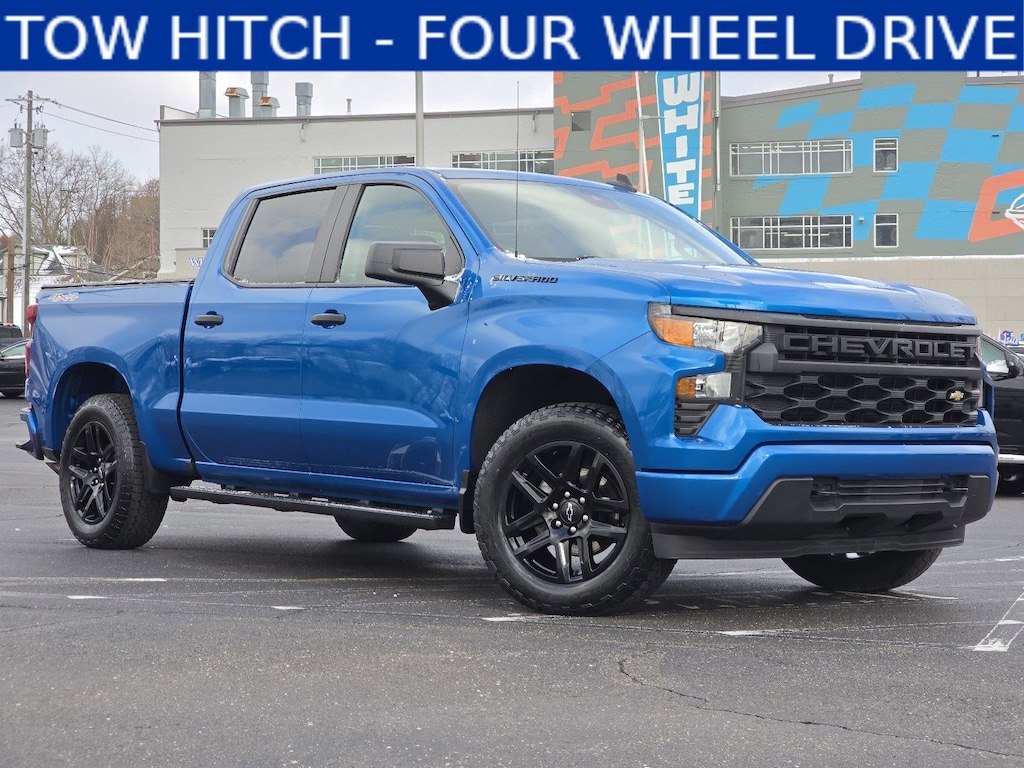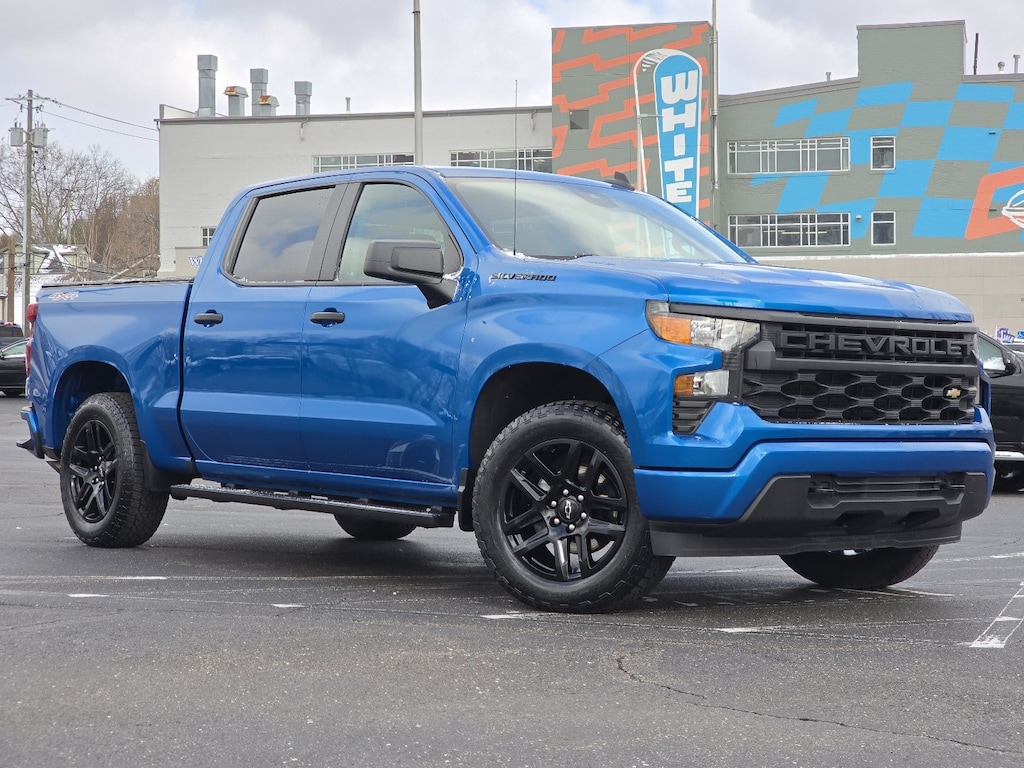 Glacier Blue Metallic 2023 Chevrolet Silverado 1500 Custom 4WD 4D Crew Cab 8-Speed Automatic 2.7L Turbo