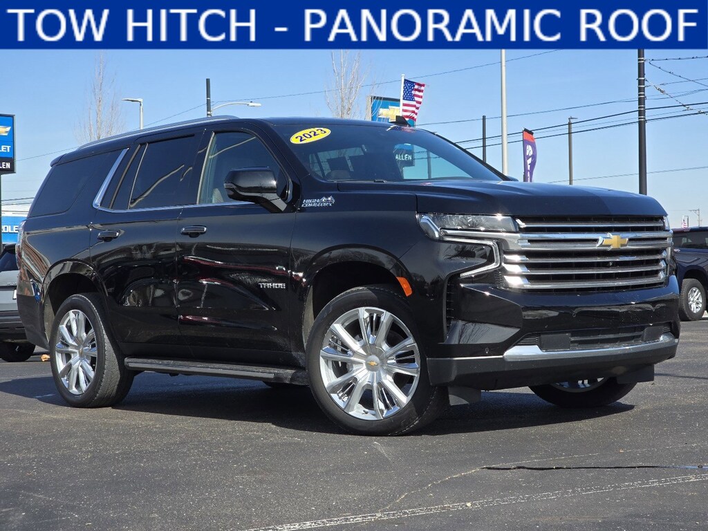 PRICED $560 BELOW KBB FAIR PURCHASE PRICE!!!Off Lease Vehicle, *GREAT DEAL*, Backup Camera, Bluetooth, Remote Start, Running Boards, Lane Keep Assist, Lane Departure Warning, Blind Spot Monitor, Adaptive Cruise Control, Trailer Package, HEATED STEERING WHEEL, HEADS UP DISPLAY, HEATED AND COOLED LEATHER TRIM SEATS, PANORAMIC ROOF MOONROOF, HEATED REAR SEATS.Black 2023 Chevrolet Tahoe High Country 4WD 4D Sport Utility 10-Speed Automatic with Overdrive EcoTec3 6.2L V8Recent Arrival!White Allen Chevrolet has been serving the residents of Dayton, Springfield, Huber Heights, Miamisburg, Troy, Fairborn, Springboro, Franklin, Beavercreek, West Carrollton, Moraine and surrounding areas for 90 YEARS!! There is a reason people keep coming to see us generation after generation. Repeat business and referrals are what make us who we are. Come see our beautiful new showroom and state of the art service facility. We have some of the best service advisors and factory trained technicians in the area. Complimentary loaner vehicles are available as well as a local shuttle service. We also offer free pick up and delivery of your vehicle (appointment required). Call us at 937-222-3701 or visit our website at www.whiteallen.com.