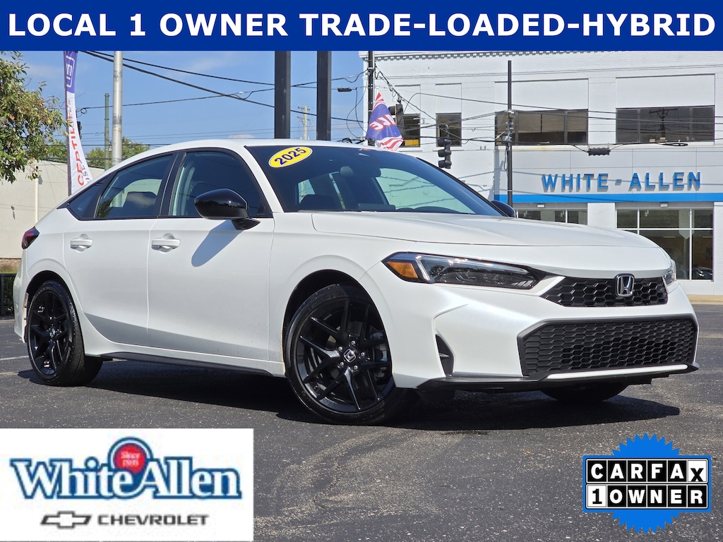 Platinum White Pearl 2025 Honda Civic Hybrid Sport FWD 4D Hatchback eCVT 2.0L I4 DOHC 16V