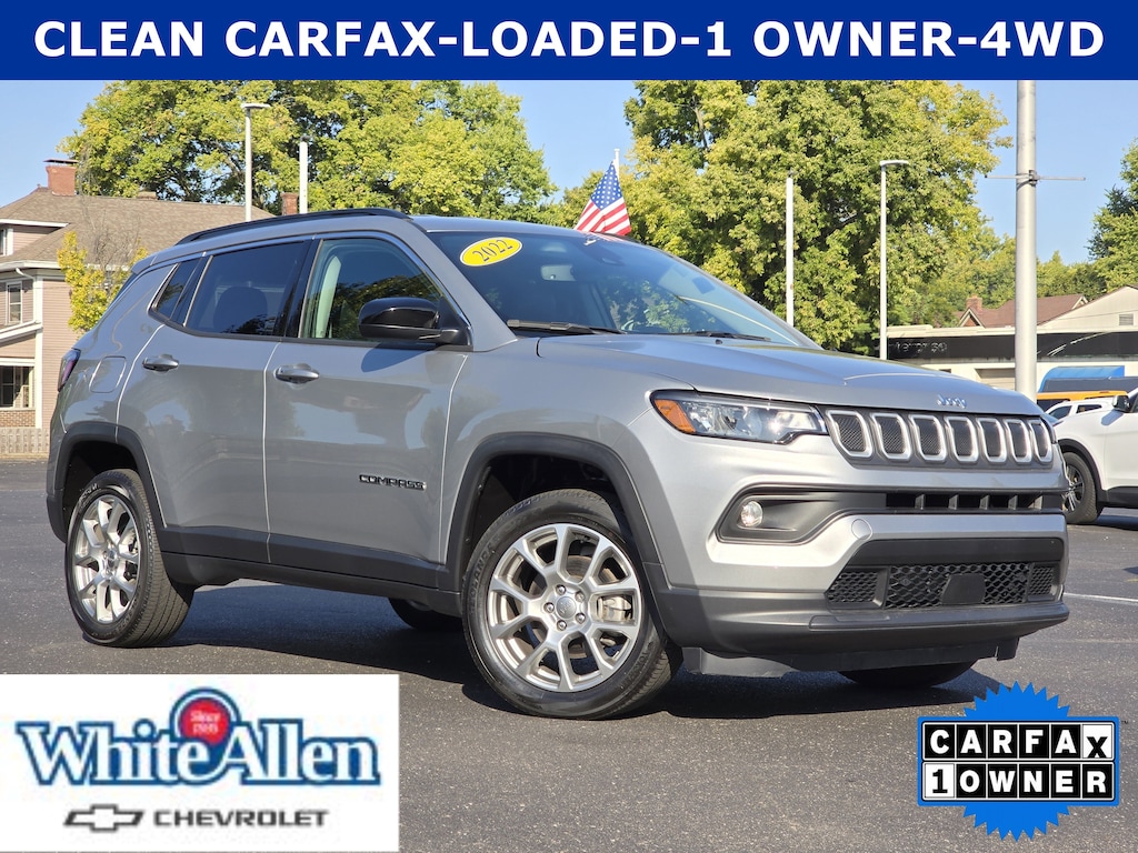 *GREAT DEAL*, One Owner, Backup Camera, Bluetooth, Remote Start, HEATED LEATHER SEATS, HEATED STEERING WHEEL, APPLE CARPLAY, ANDROID AUTO, 4WD. Clean CARFAX. CARFAX One-Owner.Billet Silver Metallic Clearcoat 2022 Jeep Compass Latitude Lux 4WD 4D Sport Utility 9-Speed 948TE Automatic 2.4L I4Recent Arrival! 22/30 City/Highway MPGWhite Allen Chevrolet has been serving the residents of Dayton, Springfield, Huber Heights, Miamisburg, Troy, Fairborn, Springboro, Franklin, Beavercreek, West Carrollton, Moraine and surrounding areas for 90 YEARS!! There is a reason people keep coming to see us generation after generation. Repeat business and referrals are what make us who we are. Come see our beautiful new showroom and state of the art service facility. We have some of the best service advisors and factory trained technicians in the area. Complimentary loaner vehicles are available as well as a local shuttle service. We also offer free pick up and delivery of your vehicle (appointment required). Call us at 937-222-3701 or visit our website at www.whiteallen.com.